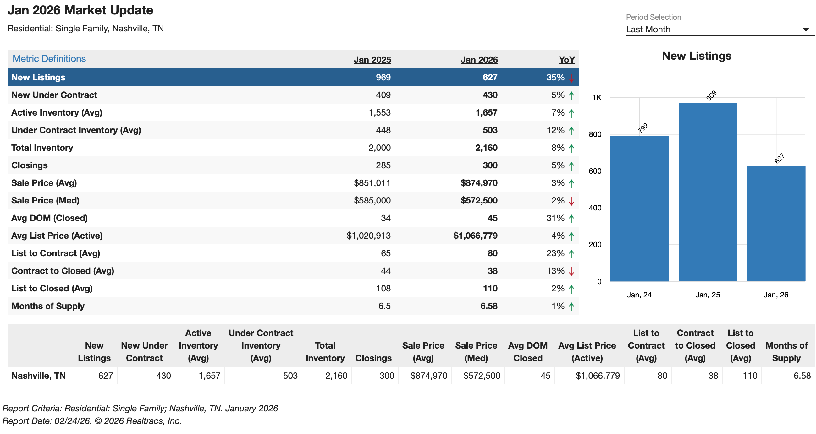Here is a full metric snapshot from the MLS in Nashville.