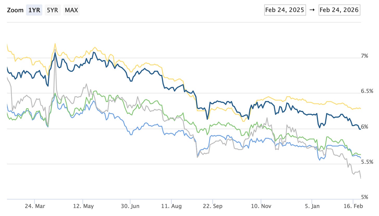 Real final sales to private domestic purchasers, the sum of consumer spending and gross private fixed investment, increased 2.4% in the fourth quarter, compared with an increase of 2.9% in the third quarter. And accelerations in private investment were up, such as in AI infrastructure and intellectual property products (up 7.4%).