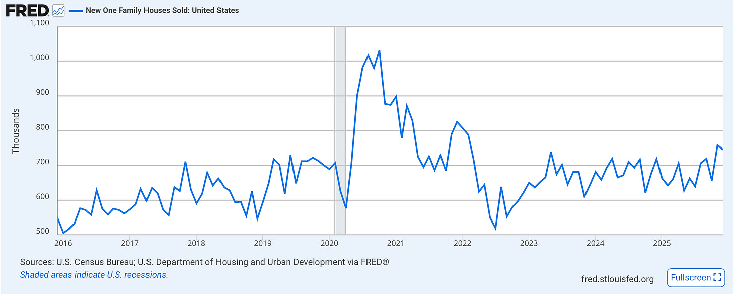 Since falling off a cliff, new homes are selling like check out counter candy, popping up to nearly ~750k, a multi-year high.